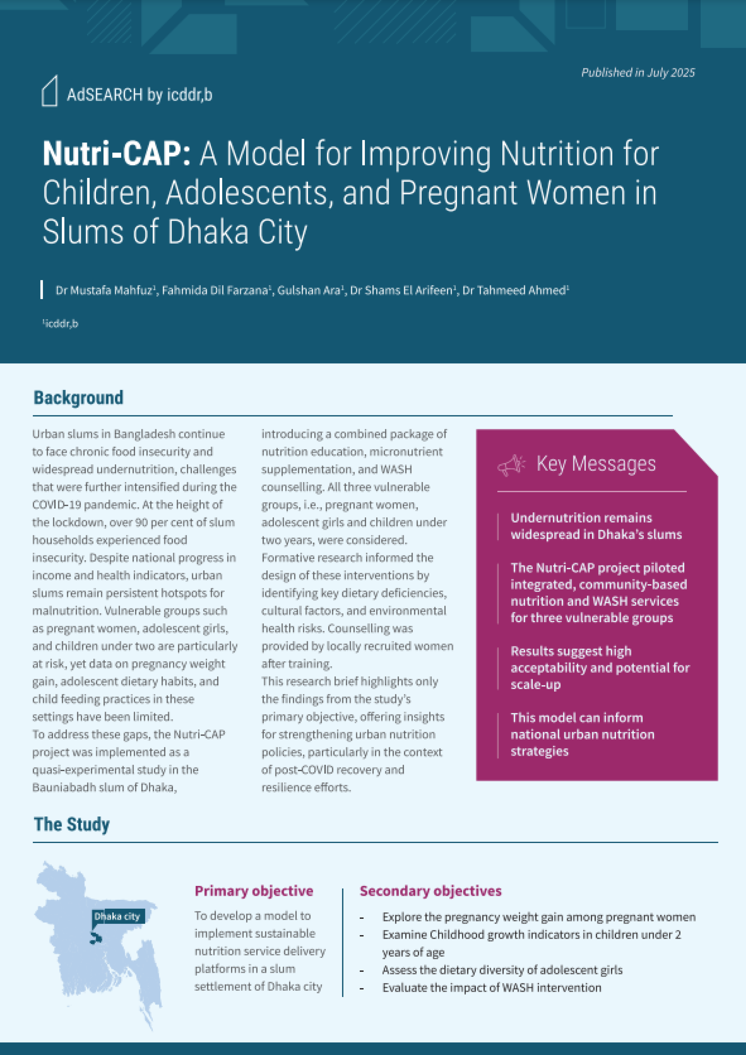 Nutri-CAP: Nutrition for Children, Adolescent girls, and Pregnant women in slums of Dhaka city