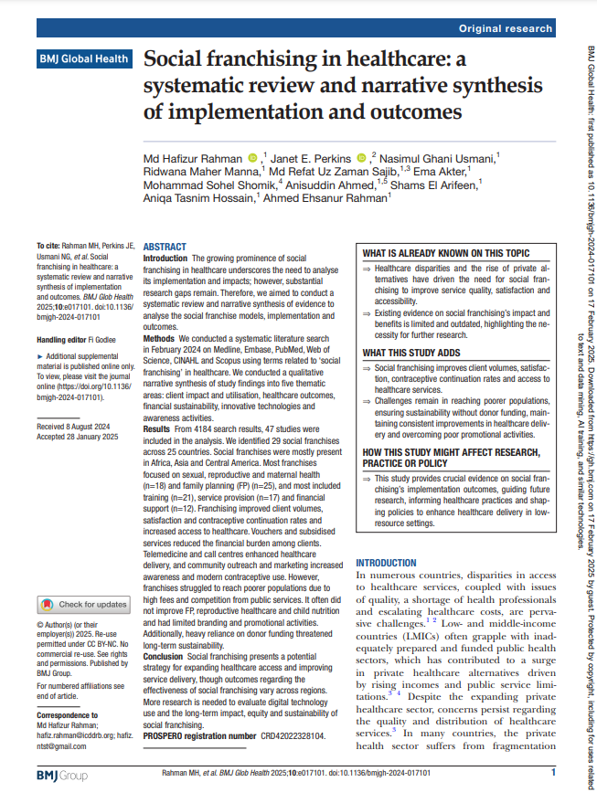 Bangladesh has a pluralistic health system, and the market share of the for-profit private sector is increasing gradually and alarmingly. This is particularly true for Reproductive, Maternal, Newborn and Child Health (RMNCH), including SRH. There is a lack of evidence on the most effective techniques for improving the quality of private sector services. However, one popular method is bringing the healthcare providers under a common network, linking them with the healthcare beneficiaries social franchising, an organisational model that uses commercial franchising principles for socially beneficial purposes. We propose to establish a platform named HealthAdvisors.Com, a social franchise network of private healthcare providers offering health services through a digital marketplace. An online platform (web-based and android app) will be created to link the private healthcare providers with health beneficiaries.