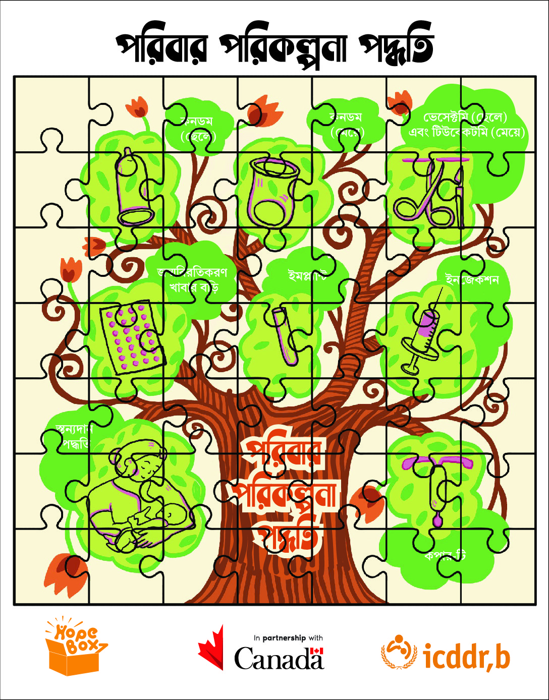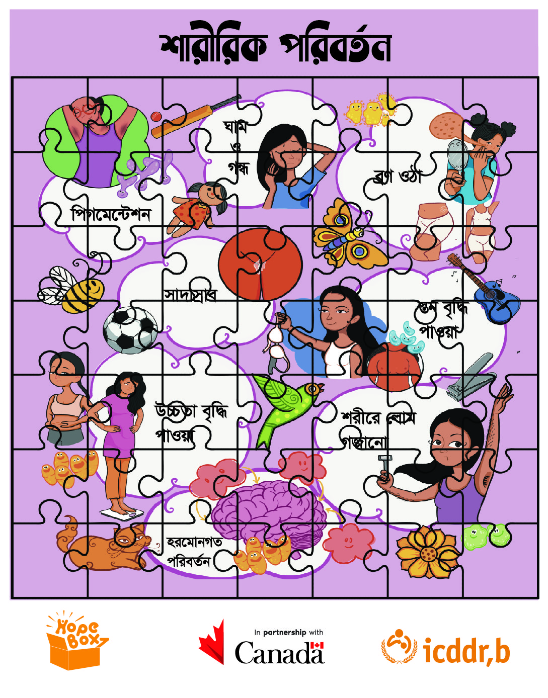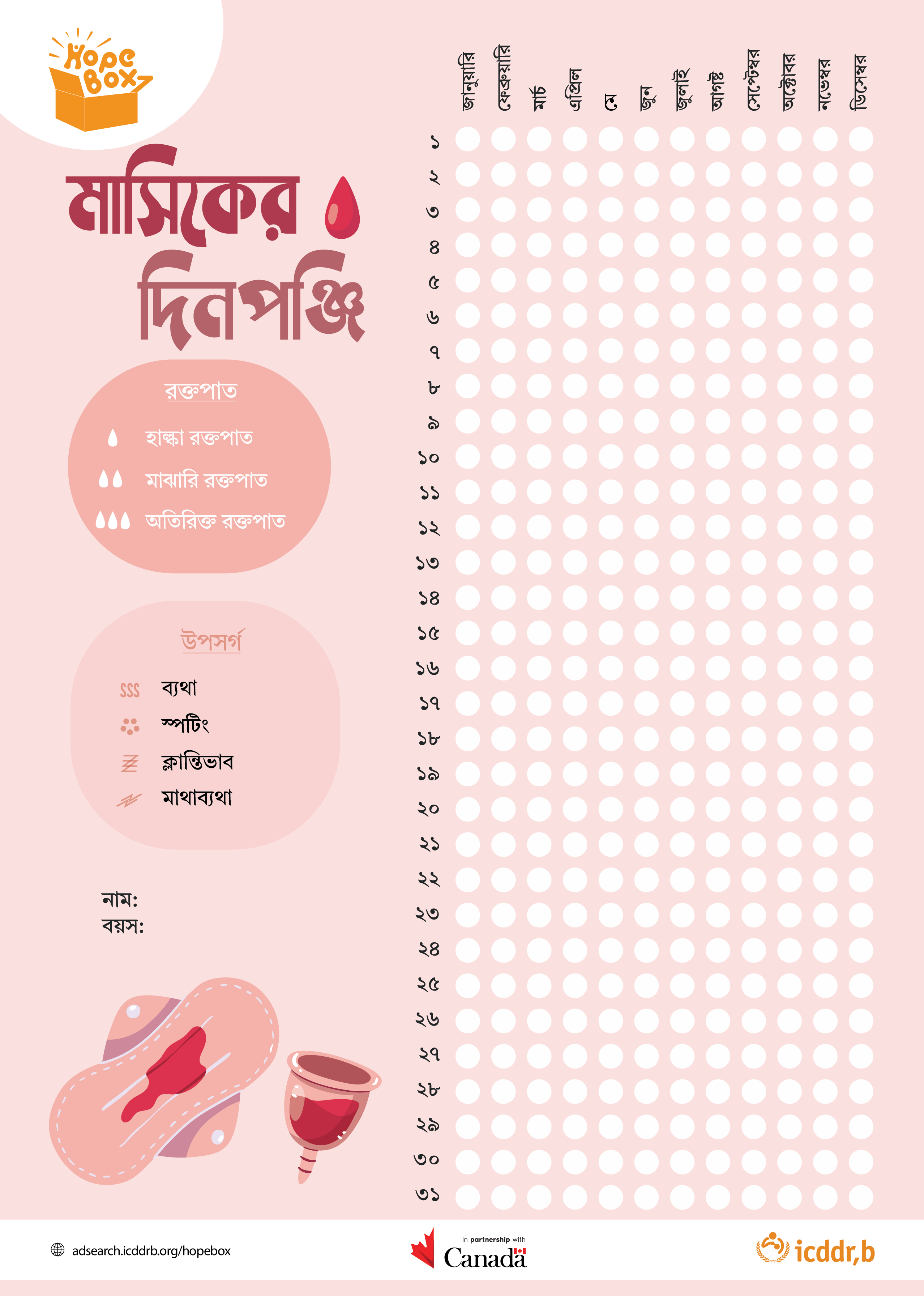 'HopeBox' is a sexual and reproductive health intervention tailored for orphan adolescent girls living in the Government Orphanages (Girls) of Bangladesh. It has been produced through a study titled, “HopeBox: A Contribution for the Orphan Adolescent Girls to Claim their Choices to Improve Sexual and Reproductive Health and Right Knowledge and Practices” under an umbrella project Advancing Sexual and Reproductive Health and Rights (AdSEARCH) by icddr,b. HopeBox aims to understand the sexual and reproductive health context, needs, barriers, and enablers of orphaned female adolescents aged 9-19 to design and develop age-appropriate and context-specific resources and intervention that are visually-stimulating, engaging and interactive. The HopeBox is equipped with 11 types of educational and interactive contents including 5 booklets, 3 postcards, 2 puzzles and 1 menstruation tracking calendar. Read More